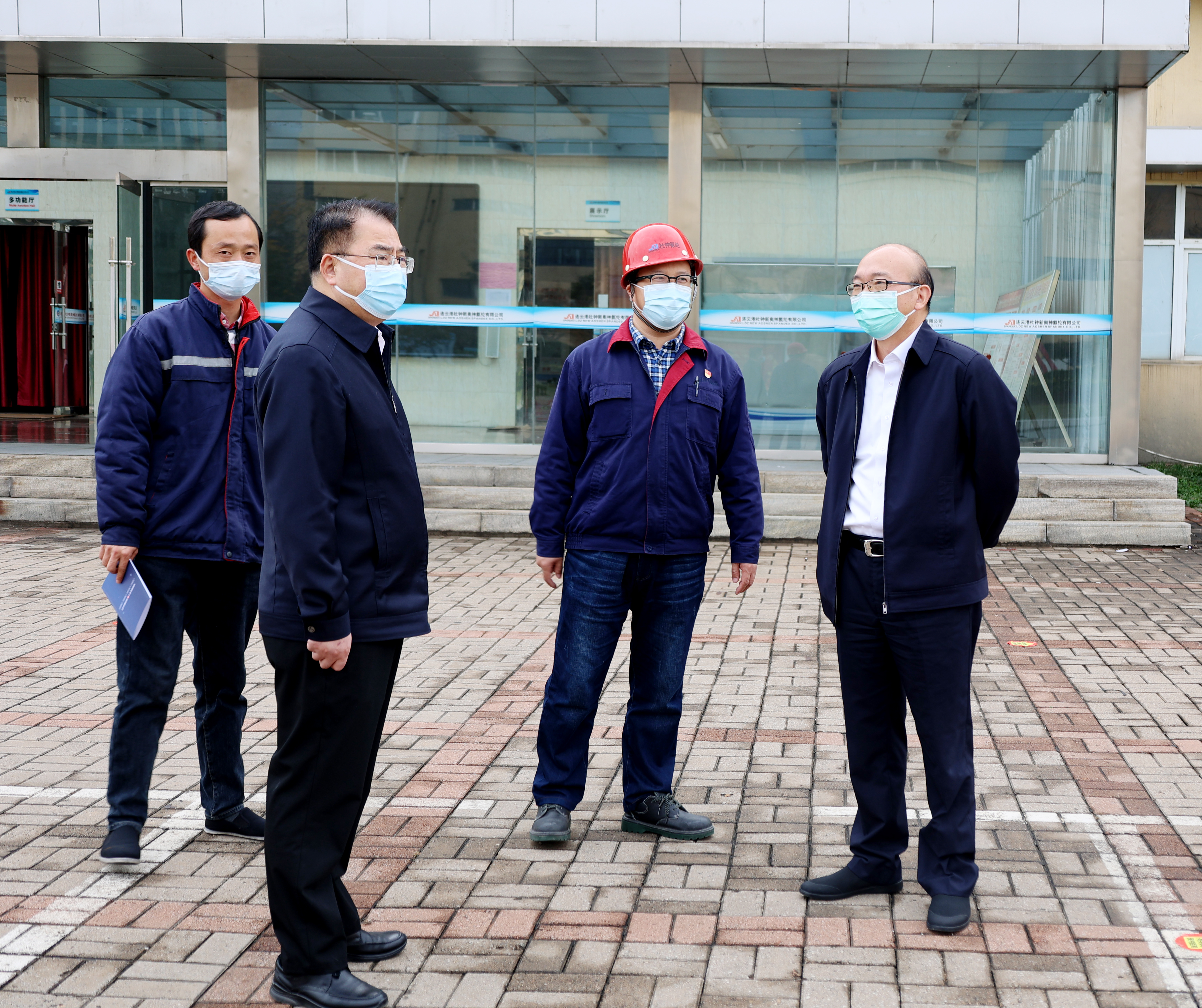 11月21日上午,集團公司黨委書記、董事長丁銳,黨委副書記、工會主席戴鴻鳴到臺北投資公司和氨綸公司檢查疫情防控工作。