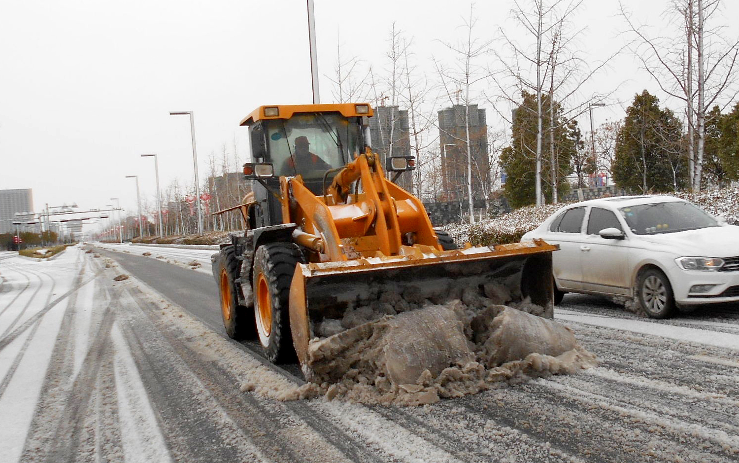 在開發(fā)區(qū)、徐圩新區(qū)、灌云臨港產(chǎn)業(yè)區(qū)的各個(gè)區(qū)域,到處都是集團(tuán)綠化保潔人的最美身影,他們?cè)诟鲉挝稽h員先鋒隊(duì)、青年突擊隊(duì)的配合下,帶上融雪劑和作業(yè)工具,發(fā)揚(yáng)不怕艱苦、連續(xù)作戰(zhàn)、敢打敢拼的工投精神,對(duì)交通要道、橋梁、彎道等重點(diǎn)防滑路段進(jìn)行清雪防凍處理,鋪灑融雪劑40余噸,為疫情防控期間車輛行人出行安全增添一份保障。
