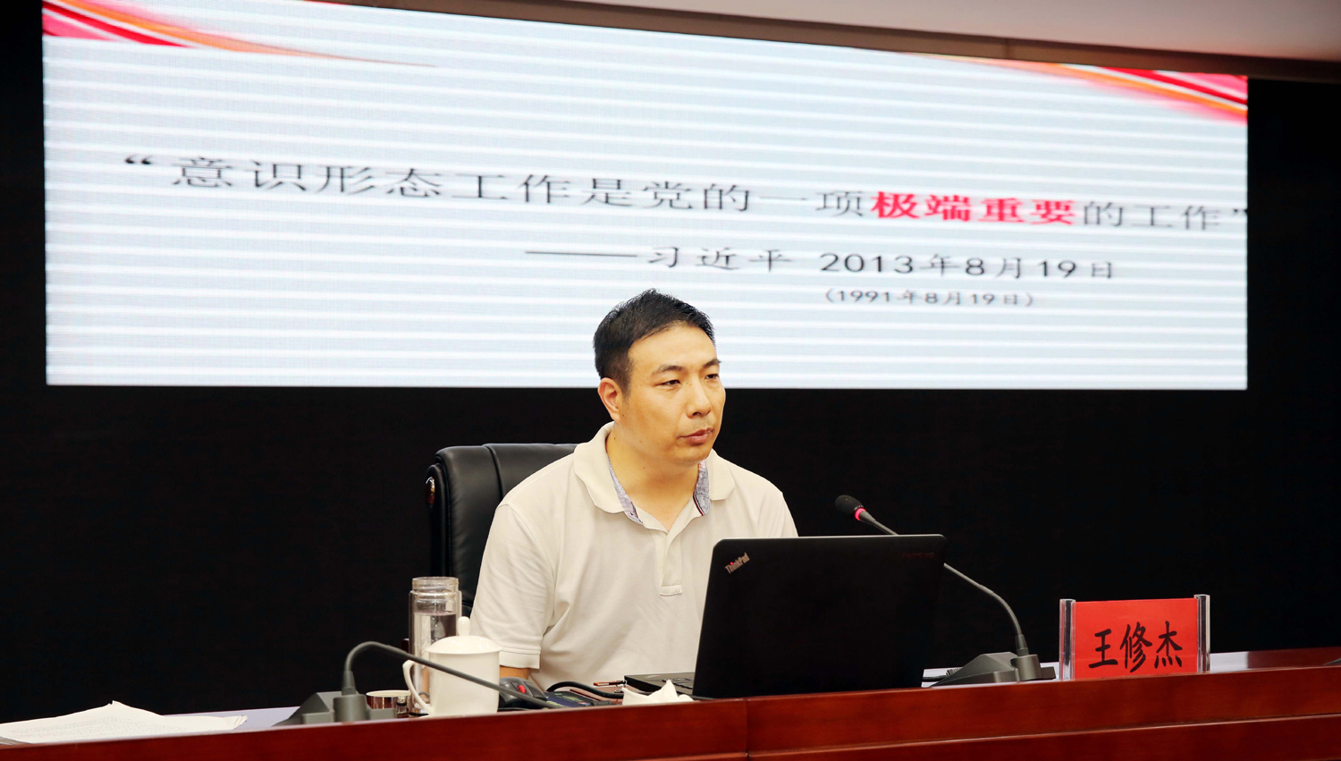 王修杰以“牢牢掌握意識形態(tài)工作的領(lǐng)導(dǎo)權(quán)”為題,結(jié)合國際國內(nèi)形勢和我市實(shí)際,圍繞充分認(rèn)識意識形態(tài)工作的極端重要性、深刻把握當(dāng)前意識形態(tài)領(lǐng)域復(fù)雜形勢、全面落實(shí)黨委意識形態(tài)工作責(zé)任制等方面內(nèi)容,深入淺出的剖析解讀了意識形態(tài)工作的基本內(nèi)涵、重大意義,報告主題鮮明、內(nèi)涵深刻、闡述透徹、聯(lián)系實(shí)際、條理清晰,既有理論思考、又有經(jīng)驗(yàn)總結(jié),為與會人員深刻理解和把握新時代國企意識形態(tài)工作的新使命、新要求、新任務(wù)、新方法具有很強(qiáng)的現(xiàn)實(shí)指導(dǎo)意義。