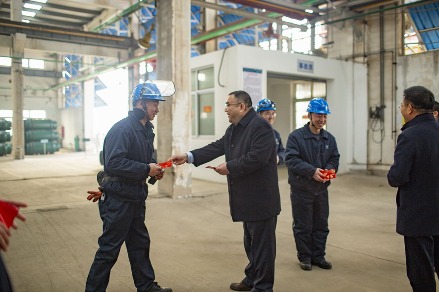 2月5日,集團(tuán)公司董事長(zhǎng)、黨委書記楊龍,黨委副書記戴鴻鳴等領(lǐng)導(dǎo)輕車簡(jiǎn)從,深入氯堿公司、氨綸公司、華茂公司、供電公司等基層單位,向春節(jié)期間堅(jiān)守在生產(chǎn)一線的廣大員工致以節(jié)日的問候和祝福,并送去慰問品。