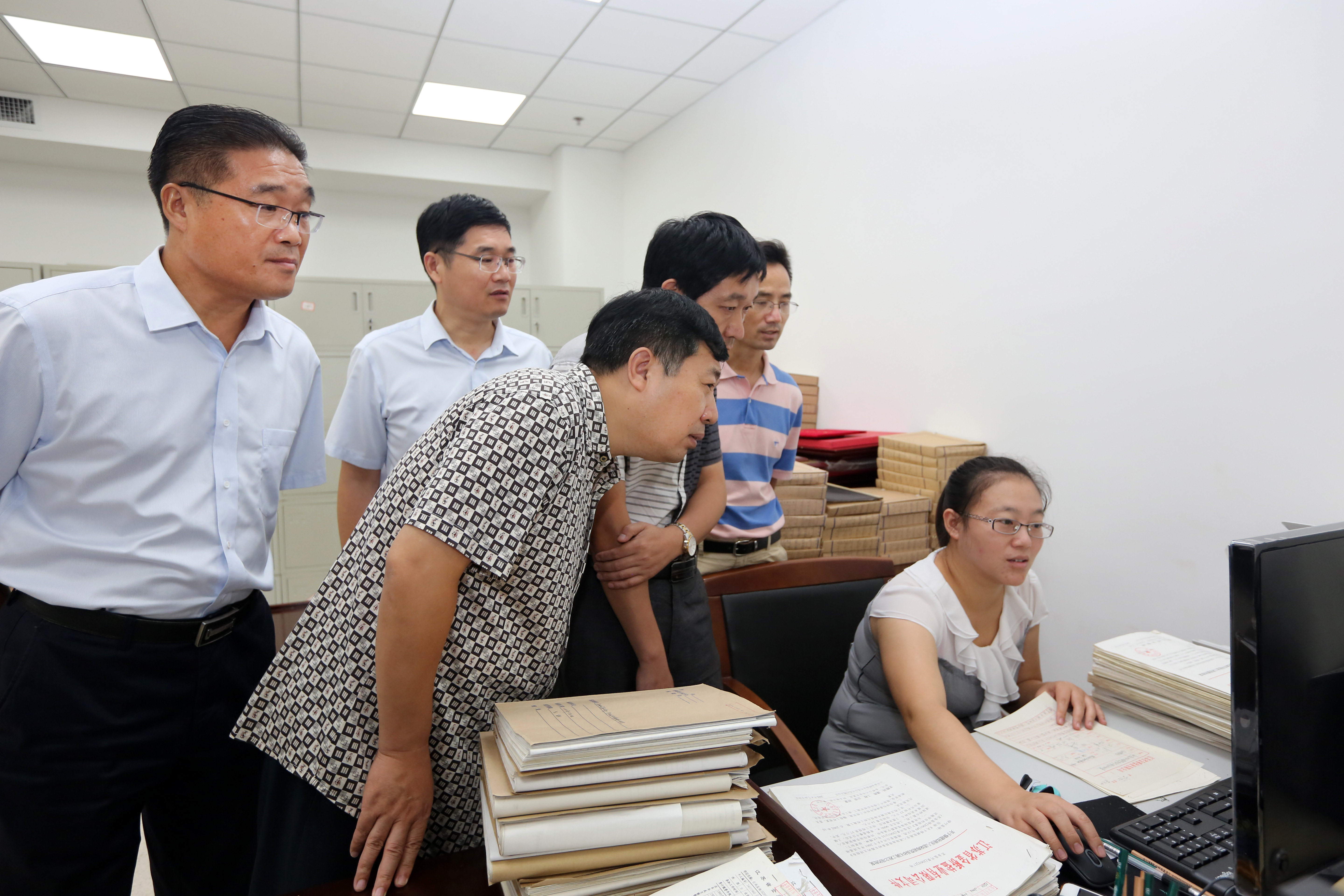 8月8日下午,市檔案局副局長韋林海一行四人來我公司檢查指導(dǎo)檔案工作,集團(tuán)公司工會主席劉承志陪同。