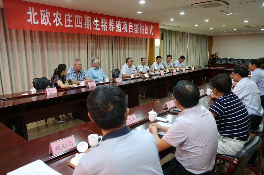 8月7日下午,北歐農(nóng)莊四期生豬養(yǎng)殖項目簽約儀式在灌云縣行政中心舉行。集團公司領(lǐng)導楊龍、胡建明、陳如軍,灌云縣領(lǐng)導朱興波、王慶嘉、張凌云,丹育公司董事勞倫斯·桑德高,連云港北歐農(nóng)莊生豬養(yǎng)殖有限公司首席執(zhí)行官楊林柏等出席簽約儀式。