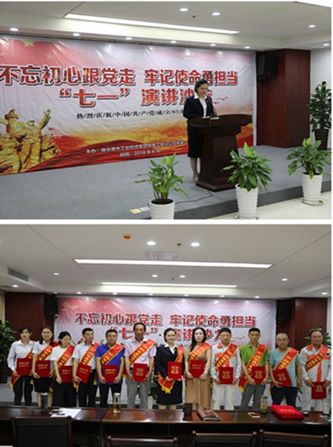 為慶祝“七一”中國(guó)共產(chǎn)黨成立97周年,6月28日下午,公司黨委舉辦“不忘初心跟黨走 牢記使命永擔(dān)當(dāng)”主題演講沙龍活動(dòng)。公司領(lǐng)導(dǎo)班子、各單位班子成員,機(jī)關(guān)全體人員等70余人觀看沙龍。演講期間,對(duì)2017—2018年度先進(jìn)黨支部、先進(jìn)黨小組、優(yōu)秀共產(chǎn)黨員、優(yōu)秀黨務(wù)工作者進(jìn)行了表彰。