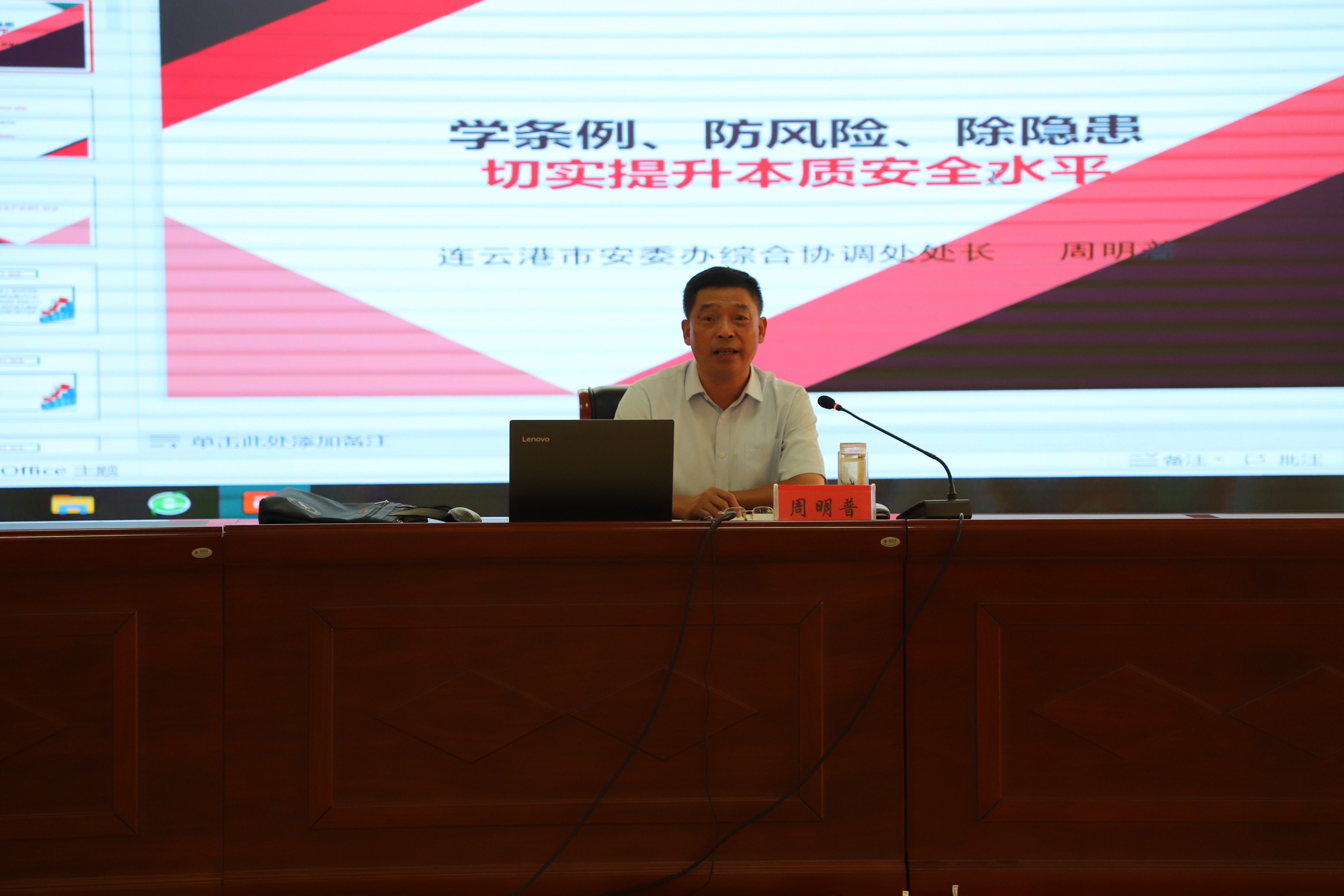 周處長對新《江蘇省安全生產(chǎn)條例》、安全生產(chǎn)重大事故隱患排查整治專項(xiàng)行動、突出抓好當(dāng)前安全管理重點(diǎn)防范建議作了深入淺出的講解,同時結(jié)合我公司實(shí)際,提出很多建設(shè)性意見。