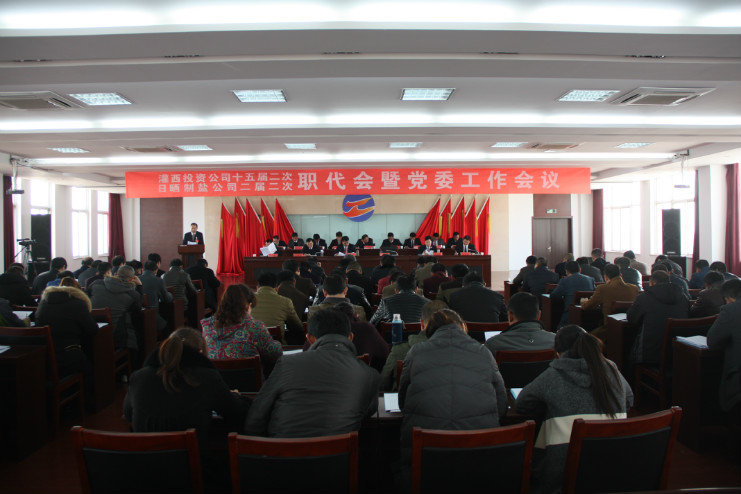 3月16日,灌西投資公司十五屆二次、日曬制鹽公司二屆二次職代會暨黨委工作會議在聯(lián)合服務(wù)中心五樓會議室隆重召開。公司董事長、黨委書記王德志作黨委工作報告,總經(jīng)理李國文作總經(jīng)理工作報告,紀(jì)委書記王保平作紀(jì)委工作報告。會議審議并通過了有關(guān)方案,簽訂了2016年度集體合同,宵洋、南翼、銷售部等單位和部門負(fù)責(zé)人分別遞交《2016年目標(biāo)責(zé)任認(rèn)標(biāo)書》、《黨風(fēng)廉政建設(shè)責(zé)任書》并作表態(tài)發(fā)言,大會還對2015年度先進(jìn)單位、先進(jìn)部門、先進(jìn)班組、先進(jìn)個人、廉潔之星進(jìn)行了表彰。