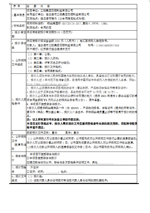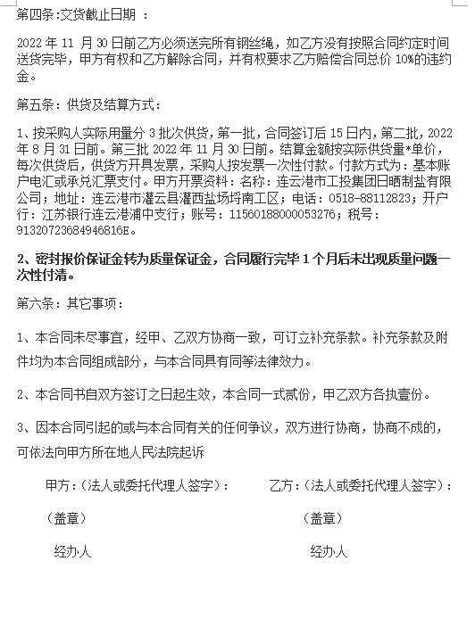 連云港市工投集團(tuán)日曬制鹽有限公司鋼絲繩采購(gòu)項(xiàng)目