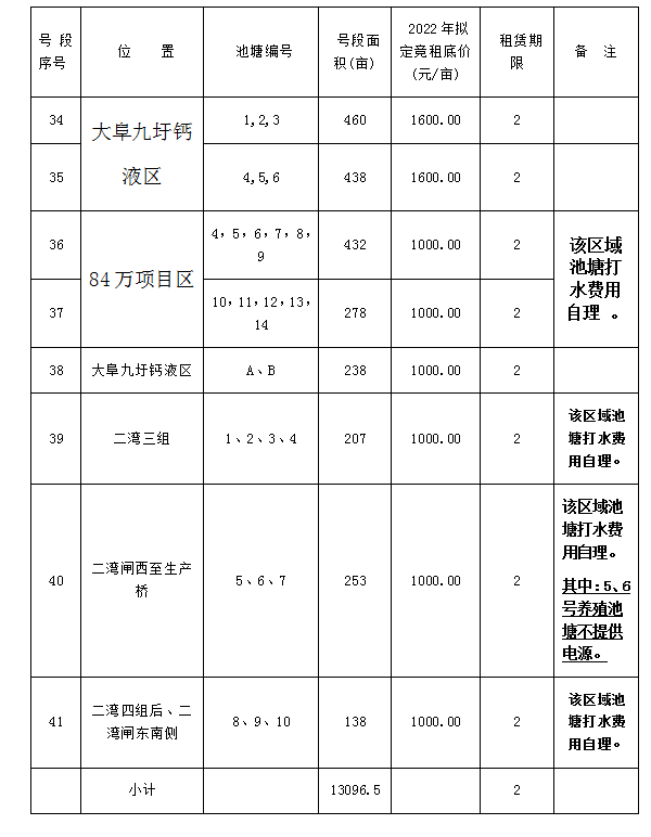 根據(jù)連云港市工業(yè)投資集團(tuán)有限公司關(guān)于資產(chǎn)租賃相關(guān)文件精神的要求及本公司淡水養(yǎng)殖池塘實(shí)際情況,經(jīng)灌西投資公司池塘租賃領(lǐng)導(dǎo)小組研究,報(bào)請(qǐng)集團(tuán)公司同意,2022年現(xiàn)對(duì)下述養(yǎng)殖池塘公開對(duì)外競租。