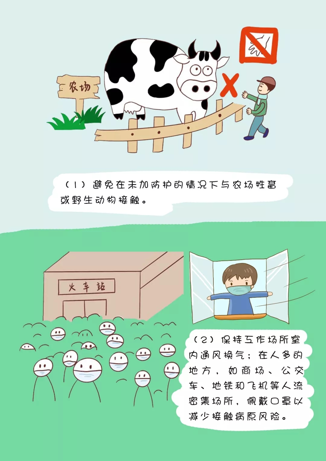 (1)避免在未加防護的情況下與農(nóng)場牲畜或野生動物接觸。