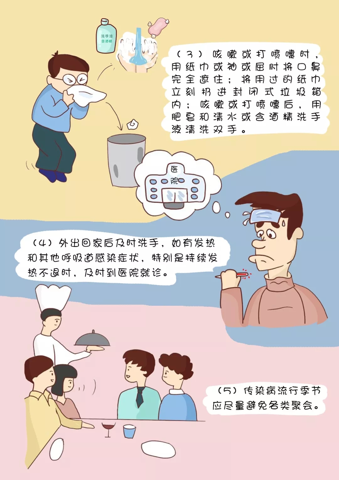 (5)傳染病流行季節(jié)應盡量避免各類聚會。