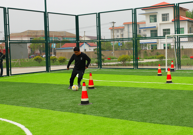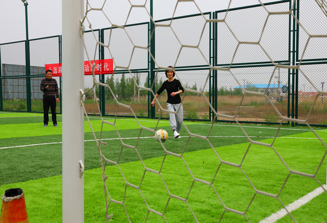 在定位傳球射門比賽中,隊員們對準(zhǔn)腳下的足球,快速傳導(dǎo),精準(zhǔn)將足球射入球門。