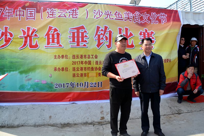 10 月 22 日 ,連云港市總工會主辦,市釣魚協(xié)會承辦中國連云港沙光魚美食文化節(jié)沙光魚垂釣比賽在公司舉行,來自全市 50 多名垂釣愛好者相聚黃沙分場劉英軍養(yǎng)殖池塘。參賽者中,既有垂釣老手,也有首次釣魚的新手,他們將同“塘”競技大顯身手,讓雙休日變得趣味十足。不一會兒,一條條活蹦亂跳的沙光魚相繼露出了水面。你上一條,我來一尾,選手們盡情享受著蛙釣的歡樂,一切都是那么和諧自然。經(jīng)過近 2 個小時的角逐。經(jīng)過裁判組現(xiàn)場計量統(tǒng)計確定名次。市總工會副主席陳健,工投集團黨委副書記戴鴻鳴為比賽優(yōu)勝者頒獎。