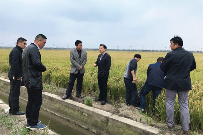 10月16日,蘇糧集團鹽城江海糧油有限公司總經理宋俊成一行來我公司考察調研水稻種植情況,公司黨委副書記、副總經理史祥平,黨委委員、副經理周緒祥陪同考察。