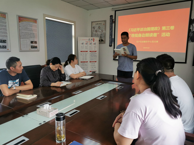 近期,生產(chǎn)生活服務(wù)中心黨支部組織黨員同志深入學(xué)習(xí)《習(xí)近平談治國理政》第三卷內(nèi)容,黨員們紛紛上臺(tái)朗讀自己喜愛的章節(jié),在學(xué)習(xí)中聯(lián)系工作理解思想理論,進(jìn)一步加強(qiáng)對(duì)習(xí)近平新時(shí)代中國特色社會(huì)主義思想的認(rèn)識(shí),聚焦自身實(shí)際深入學(xué),深刻感悟我將無我的情懷和自我革新的意識(shí),切實(shí)用習(xí)近平新時(shí)代中國特色社會(huì)主義思想武裝頭腦、指導(dǎo)實(shí)踐、推動(dòng)工作。(牛 瑩)