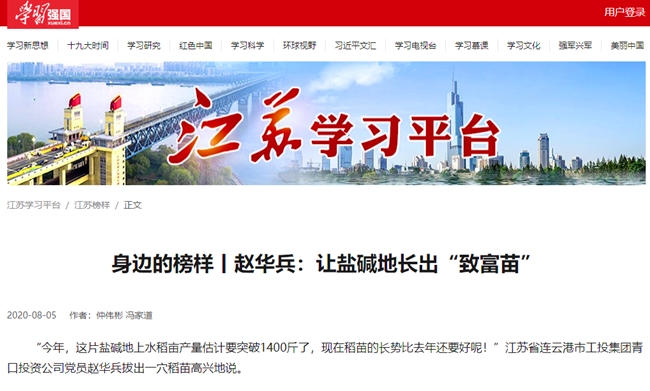 近日,我公司黨員趙華兵事跡登上“學(xué)習(xí)強(qiáng)國”江蘇學(xué)習(xí)平臺(tái),黨建品牌的影響力、引領(lǐng)力和傳播力進(jìn)一步提升。