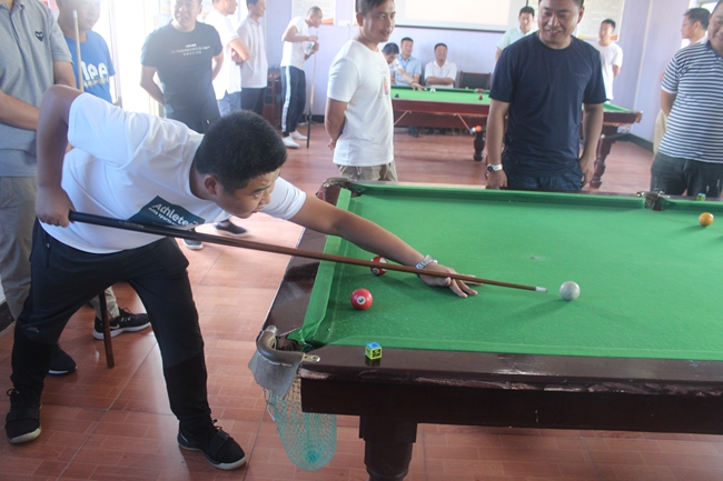 ? ? 臺(tái)球初賽采用三局兩勝淘汰賽制,抽簽決定比賽對(duì)手和上場(chǎng)順序,第一輪勝出者進(jìn)入下一場(chǎng)比賽,前四名選手進(jìn)入決賽。本次共有32名選手報(bào)名,參賽隊(duì)員雖然都是業(yè)余愛好者,但每名參賽選手態(tài)度非常認(rèn)真,臺(tái)球桌前,他們不停地走動(dòng)尋找最佳擊球點(diǎn),架桿、出桿、撞球、落袋,過(guò)程緊張而激烈,博得觀眾陣陣掌聲。經(jīng)過(guò)多輪角逐,服務(wù)中心張建軍獲本次比賽的冠軍,大新農(nóng)場(chǎng)徐振濤、候玉剛及服務(wù)中心張根林獲得二等獎(jiǎng)。
