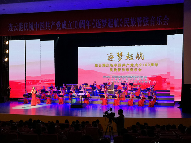 《逐夢起航》連云港慶祝中國共產(chǎn)黨成立100周年大型民族管弦音樂會,由中共連云港市委黨史學(xué)習(xí)教育領(lǐng)導(dǎo)小組辦公室、中共連云港市委宣傳部、連云港市文化廣電和旅游局主辦,連云港市演藝集團承辦,演出單位是江蘇女子民族樂團。音樂會分為《憶往昔崢嶸歲月》《舉旗幟山河復(fù)興》《再起航奮楫逐夢》三個篇章,每個篇章以詩歌朗誦抒發(fā)時代情感,謳歌黨的光輝歷程。通過紅色旋律表達(dá)人民對黨的感恩之情,向黨的百年華誕獻(xiàn)禮。(神特宣)