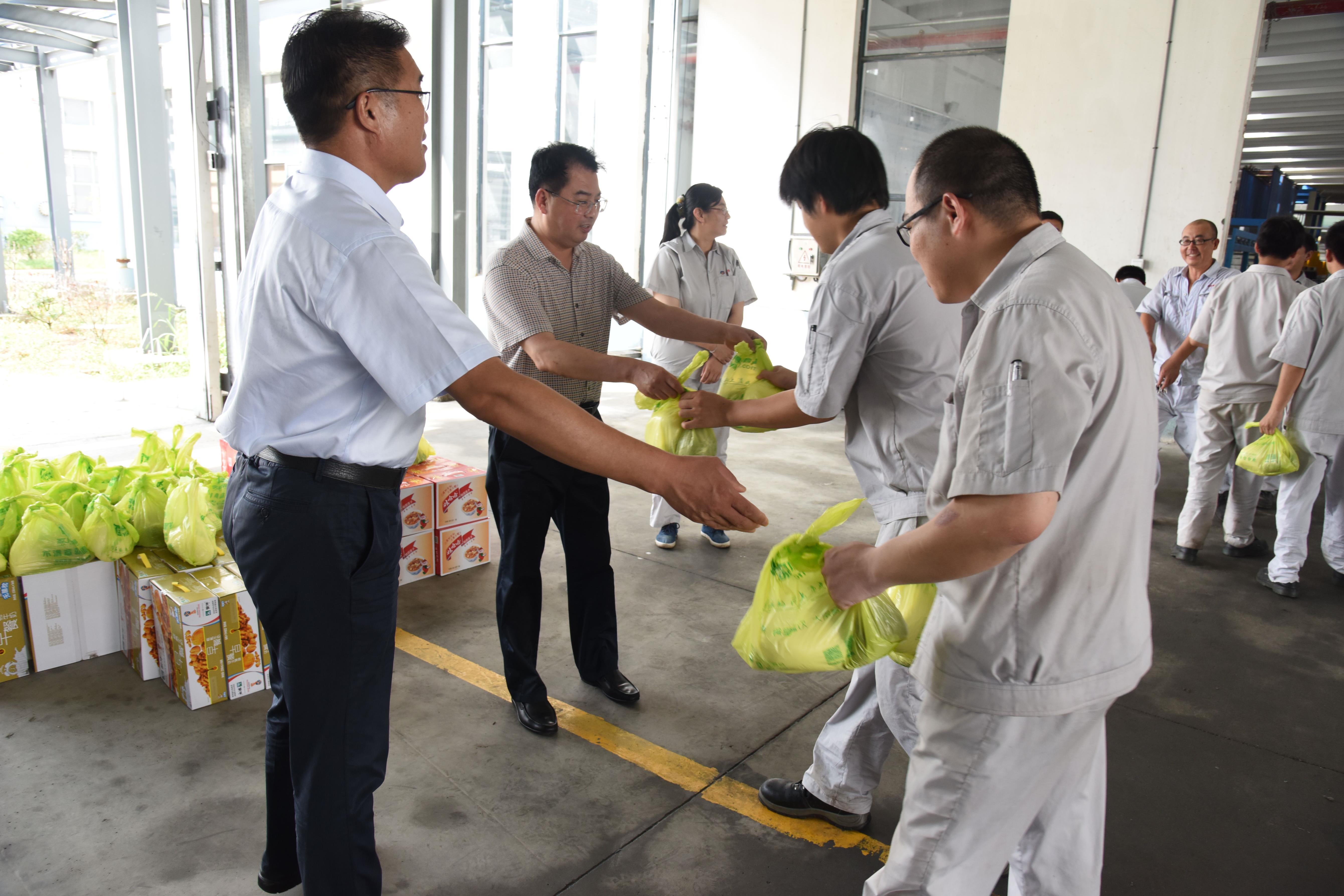 7月19日下午,集團(tuán)公司黨委副書記戴鴻鳴、工會(huì)主席劉承志一行不顧酷暑高溫,深入到神特公司生產(chǎn)一線,為職工送上了牛奶、綠豆等防暑降溫物品。戴鴻鳴書記詳細(xì)詢問了生產(chǎn)經(jīng)營(yíng)管理及職工的生產(chǎn)、生活等情況;同時(shí)督促神特公司要進(jìn)一步落實(shí)防暑降溫政策,切實(shí)維護(hù)職工的健康權(quán)益。