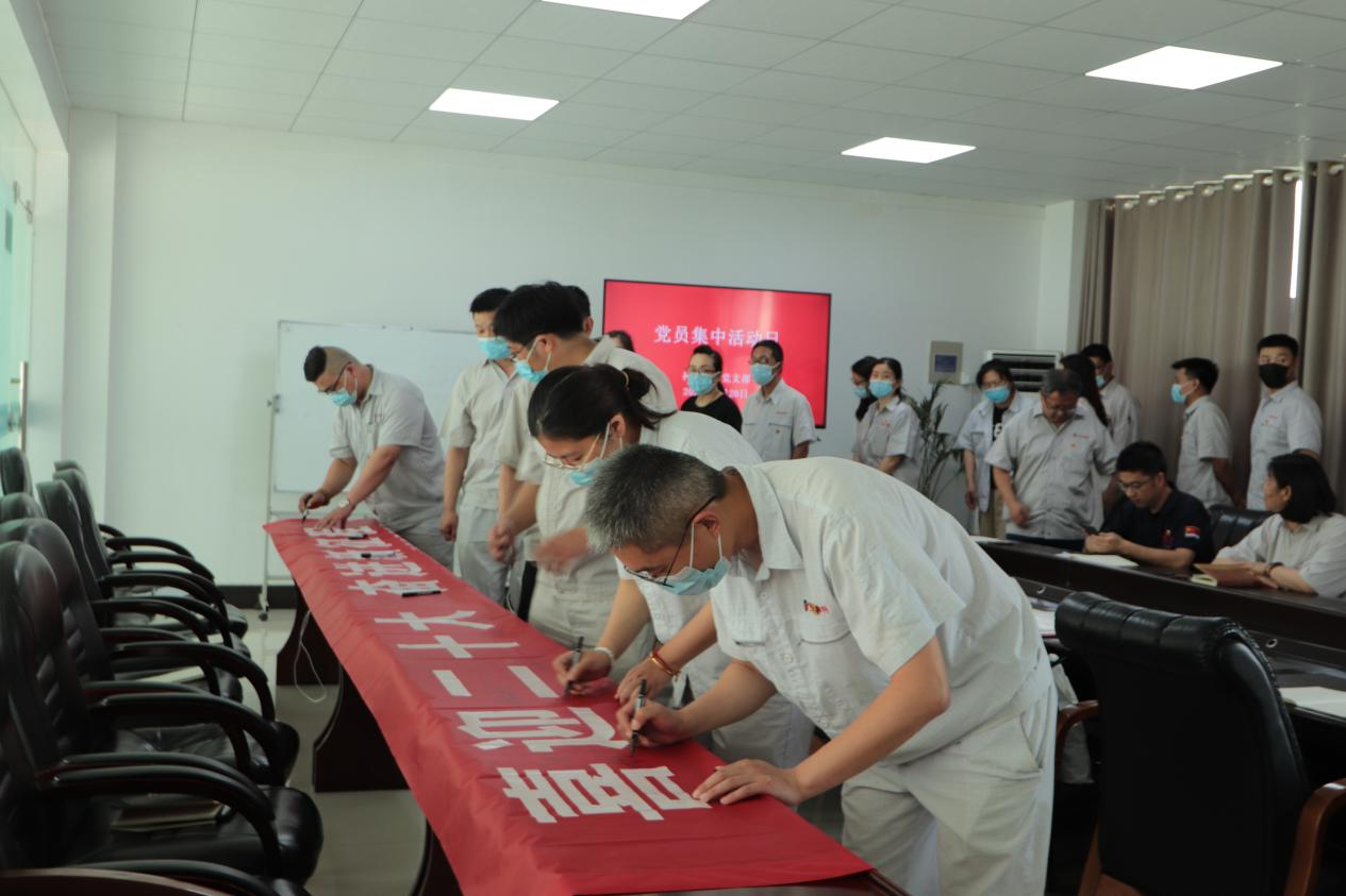 在七一即將來臨之際,公司組織全體黨員開展“喜迎二十大,奮進(jìn)新征程”黨員集中活動日?;顒又?,與會黨員集體宣誓,重溫入黨誓詞,回憶入黨初心,并在條幅上簽名,作出鄭重承諾。公司黨支部表彰一批優(yōu)秀共產(chǎn)黨員,激勵全體黨員守初心、勇?lián)姑⒐钥穗y、建功立業(yè)。