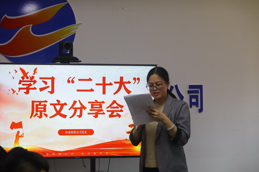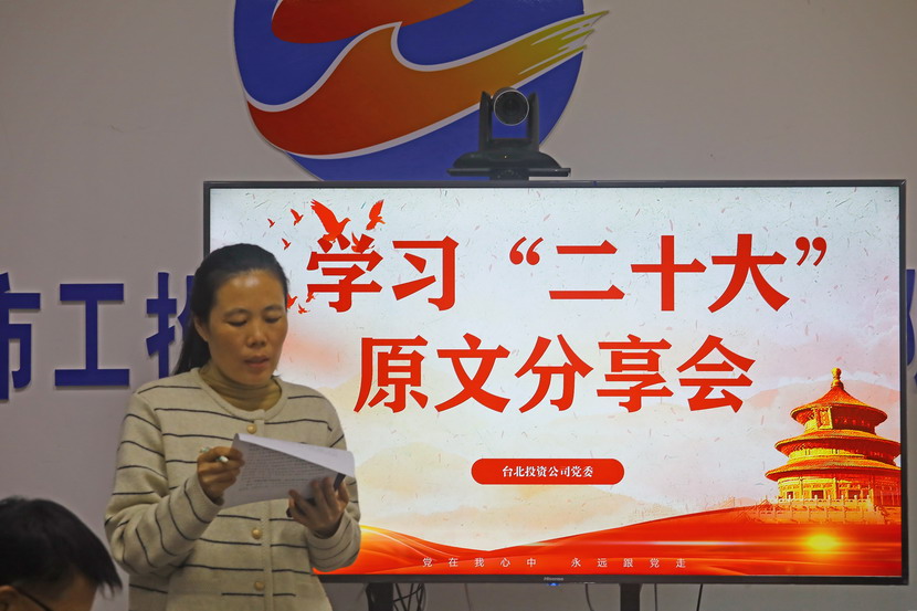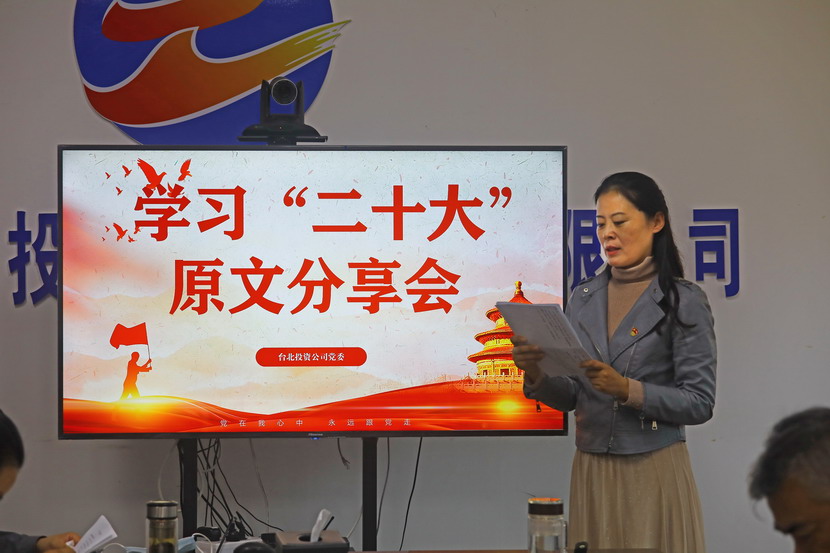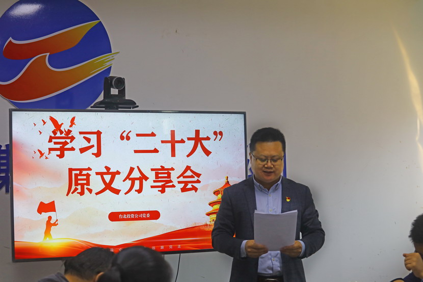 10月21日,臺(tái)北投資公司黨委組織召開黨的二十大報(bào)告學(xué)習(xí)交流會(huì),每位同志閱讀報(bào)告原文,針對(duì)報(bào)告內(nèi)容結(jié)合工作實(shí)際,分享心得體會(huì)、暢談工作思路、謀劃未來發(fā)展。