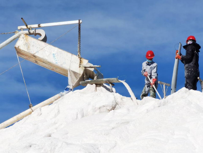近日,海州灣公司秋季扒鹽工作全面開展,鹽田一派忙碌的景象,一線鹽工們頂著太陽(yáng),披著繁星,不分晝夜在生產(chǎn)一線。