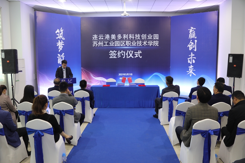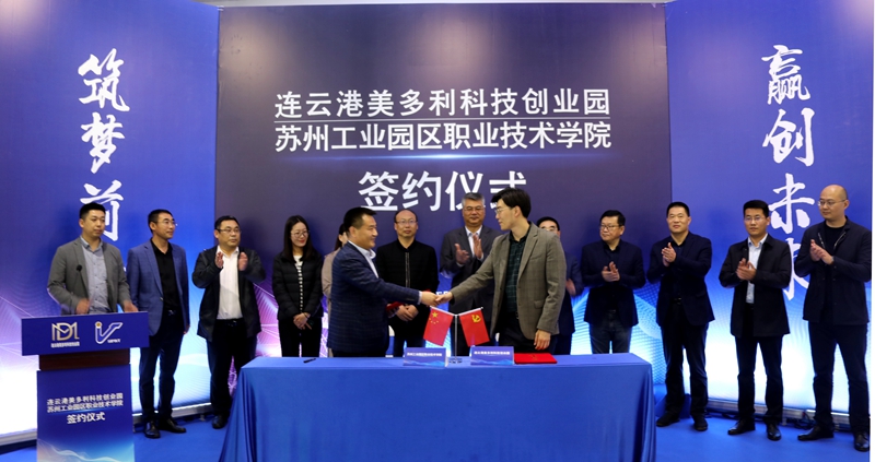 5月11日,投資公司美多利科創(chuàng)園與蘇州工業(yè)園區(qū)職業(yè)技術學?!爱a教融合”項目簽約儀式在“??汀北妱?chuàng)空間隆重舉辦。開發(fā)區(qū)教育工委委員、社會事業(yè)局教育處處長劉益國等領導,蘇州工業(yè)園區(qū)職業(yè)技術學院繼續(xù)教育學院院長魏剛等校方代表,投資公司全體領導班子,美多利公司全體領導班子參加了簽約儀式。