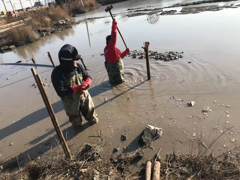 管道巡查發(fā)現(xiàn)通往堿廠的鈣液輸送管道因天氣影響爆裂損壞在送水道泥水中,搶修難度陡然增大。在困難前,我們干事豪情直面挑戰(zhàn)、創(chuàng)業(yè)激情燃燒嚴(yán)寒,穿上臃腫的防水皮衩深入到齊腰深的冰水中,卷起袖子雙手在水下摸索著對(duì)接管道,擰緊哈弗節(jié)上的每一根螺絲,接下來(lái)的打樁捆綁固定一切皆是那么的嫻熟。什么寒風(fēng)侵肌、冰澈透骨全然阻擋不住我們“鐵軍”干事創(chuàng)業(yè)的激情,鏗鏘有力的大錘不斷打下新一年的希望。