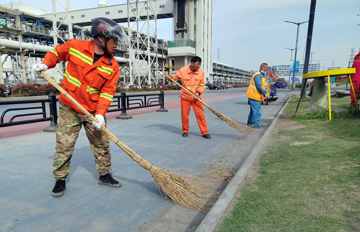 保潔保障“步調(diào)一致”。為完成徐新路、徐圩大道、海濱大道等石化園區(qū)多條道路保障任務。130余名“保潔先鋒”輪流轉(zhuǎn),每日清掃輔道路修剪石楠等樹葉雜草落葉路線1500米、清洗站臺座椅40余個、清掏果皮箱130余個、轉(zhuǎn)運生活垃圾300袋、打包轉(zhuǎn)運商鋪垃圾150余車,為保障節(jié)日期間道路保潔鍥而不舍。