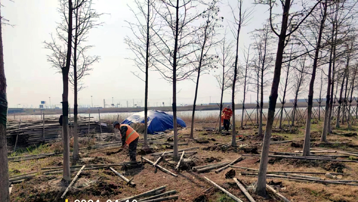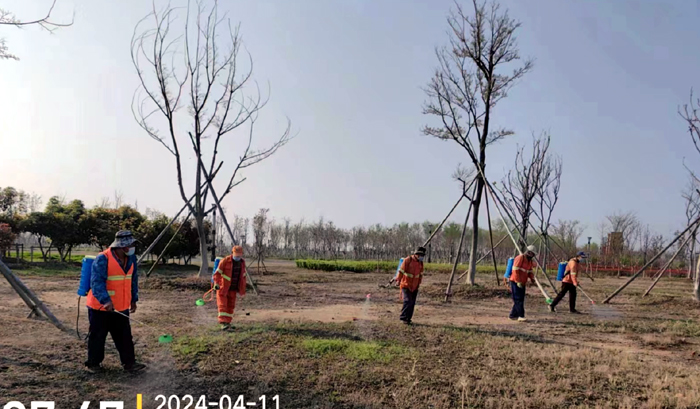 積極澆灌返青水。當(dāng)前,地溫回升快,苗木易萌芽,該班組采用“人工+機(jī)械”相結(jié)合的方式,全面啟動返青水集中澆灌工作,重點對園區(qū)喬木、果木、草坪等進(jìn)行全面灌溉,促進(jìn)苗木、草坪返青發(fā)芽。按照分種類、合理澆灌的原則,采取集中澆灌的方式最大限度減緩晝夜溫差對綠化植物的影響,入春后共澆水100余次,對落羽杉圓動力灌根2000棵,對大樹澆水1500棵,綠化澆水約30000平方米。