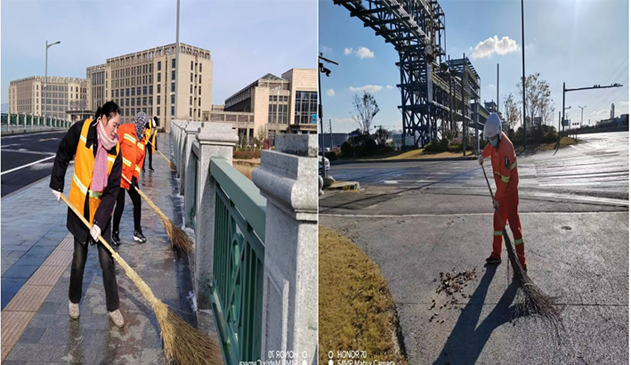 人工保潔“無所畏懼”。該分公司9個班組100多名保潔人員每天在班長的帶動下,無懼徐圩海風(fēng)吹透身體,盡管手凍僵了,仍然揮動手中掃把清掃園區(qū)輔道落葉、泥土1500多米長,清倒各種果皮箱300多個,轉(zhuǎn)運(yùn)各類生活垃圾500多包,清洗站臺20多個,清除道路坑塘積水30多處,深冬時節(jié)道路人工保潔質(zhì)效再“升溫”。