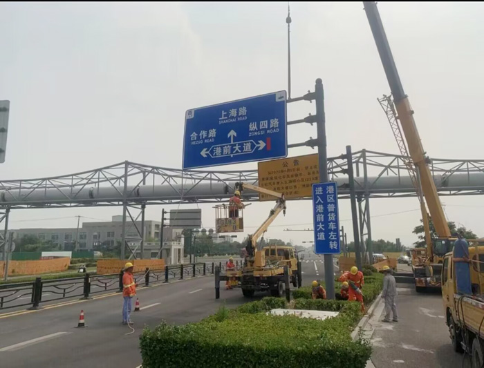 從5月起,市政分公司已著手15座標(biāo)志牌基座澆筑工作,7月初,完成了基礎(chǔ)養(yǎng)護(hù)期,達(dá)到安裝條件。因前階段準(zhǔn)備工作到位,為此次標(biāo)志牌安裝作業(yè)順利完成奠定了堅(jiān)實(shí)的基礎(chǔ)。本次施工的道路包括港前大道、蘇海路、徐新路等8條道路,共拆除、安裝大型標(biāo)志牌15套,工程收入約十萬元。