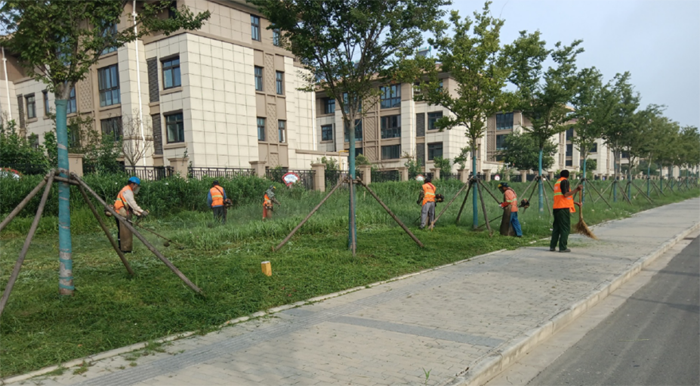 炎炎夏日,仍然阻擋不了綠化先鋒傾情奉獻(xiàn)的熱情。早晨6點(diǎn),大家就開始一天的工作了。修剪過程中采用人工、機(jī)械相結(jié)合的方式,對(duì)面積相對(duì)較大、地面相對(duì)平整且障礙少的草坪綠地,采用手推式草坪機(jī)進(jìn)行修剪;對(duì)障礙物較多的綠化采用人工拔草的方式。驕陽(yáng)似火,綠化衛(wèi)士們干的熱火朝天,身上的衣服干了濕、濕了干,累了就席地而坐,休息一會(huì),然后繼續(xù)工作。經(jīng)過兩天的持續(xù)奮戰(zhàn),共清理雜草5萬(wàn)平方米,出色的完成了此次雜草清理任務(wù)。他們用不辭辛苦、愛崗敬業(yè)的態(tài)度換來(lái)了新區(qū)優(yōu)美的環(huán)境,也換來(lái)了不息的蓬勃朝氣。(陳小東)